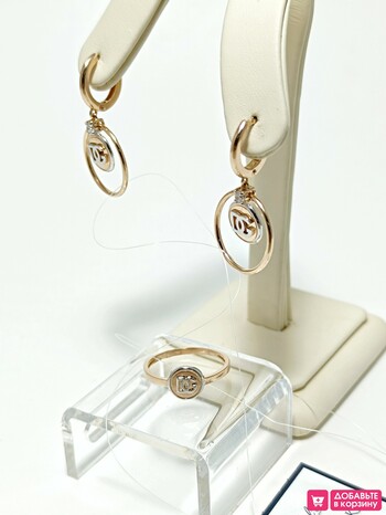 ЗОЛОТОЙ КОМПЛЕКТ: СЕРЬГИ И КОЛЬЦО С ФИАНИТАМИ 5,58грамм