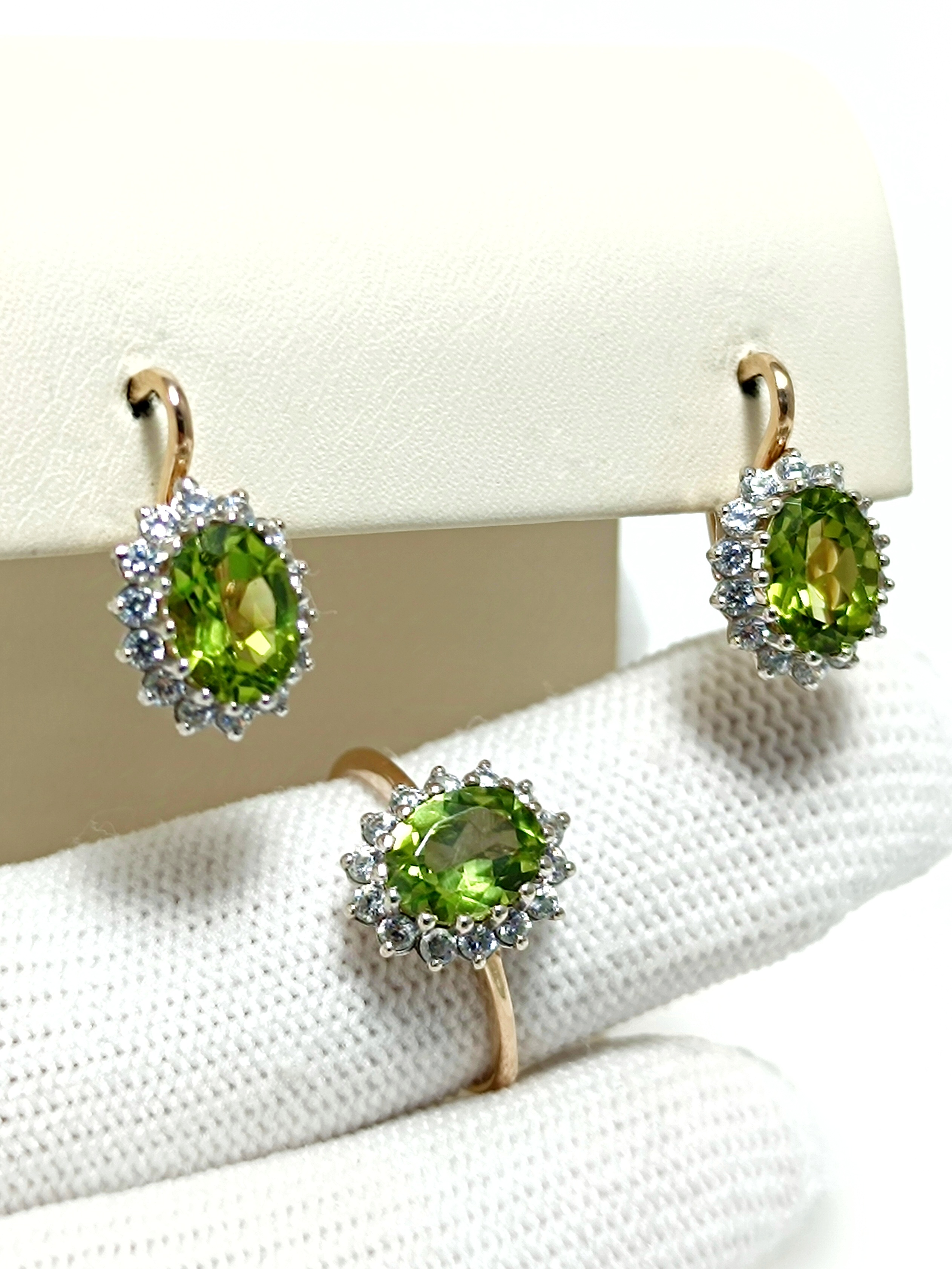 Комплект: золотые серьги и кольцо со вставками фианит. ВНИМАНИЕ!!! Данный комплект можно разукомплектовать и приобрести в отдельности.