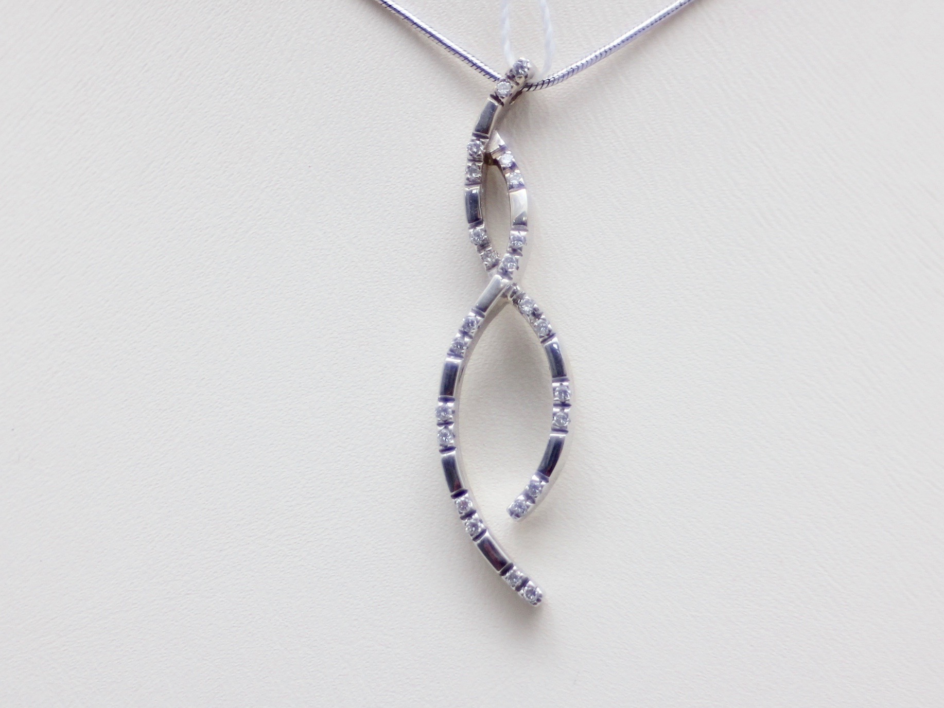 Золотая подвеска из белого золота 585 пробы, 24 бриллианта, вес 3,93г Белое золото создает эффект зеркала, который усиливает блеск камней. Особенно роскошно в таком обрамлении смотрятся бриллианты. Белая подвеска с бриллиантами подчеркнет Ваш утонченный стиль, дополнит и официальный, и романтический образ. Вставка: 24 Бриллиант Кр-57-0,2 3/4 - 24 бриллианта классической круглой огранки 57 граней (специальная форма огранки камня, чтобы с учетом преломления света получить максимальный блеск) весом 0,2 карат, цвет 3 (великолепно), чистота 4 (очень хорошо). Белая подвеска с бриллиантами упакована в подарочную коробочку. Качество сплава ювелирного изделия подтверждено клеймом Российской государственной пробирной инспекции, изделие соответствует требованиям отраслевого ювелирного стандарта.